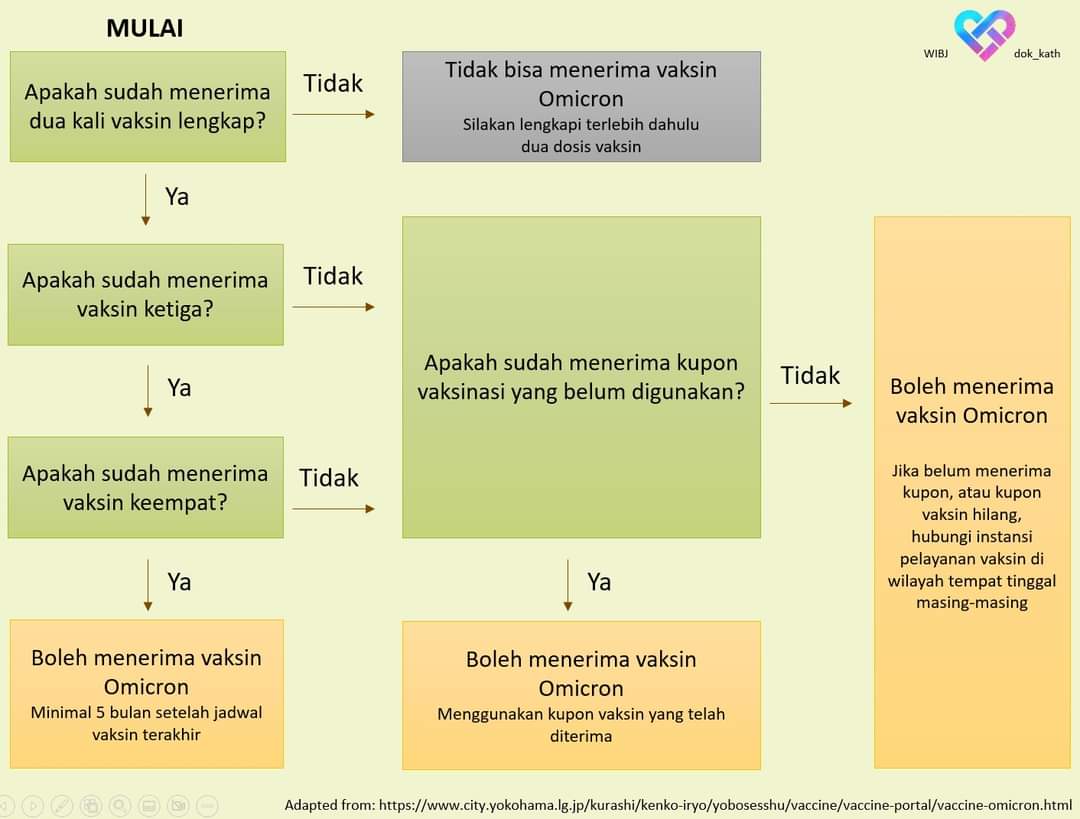 Booster dengan vaksin Omicron bisa diterima oleh semua orang berusia dari usia 12 tahun ke atas. Saya sertakan di foto contoh flow chart target peserta penerima vaksin Omicron.